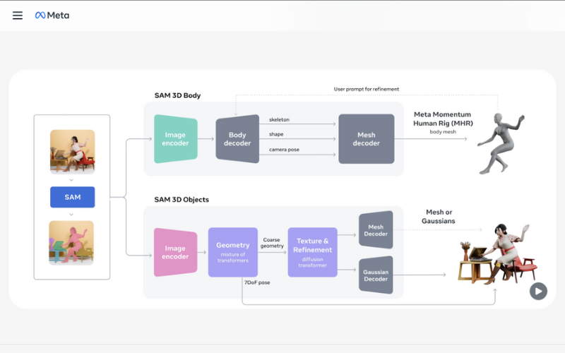 SAM 3D架構由兩個核心模型組成:SAM 3D Objects與SAM 3D Body。