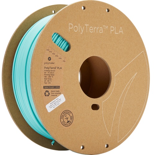PolyTerra PLA纏繞在回收紙板捲軸上,並附有回收標籤和外包裝